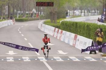 台海网4月21日讯(导报记者 康泽辉)4月19日,2026北京亦庄半程马拉松暨人形机器人半程马拉松举行,荣耀机器人“闪电”以50分26秒的净时成绩夺冠,这个成绩比人类半程马拉松世界纪录——乌干达选手基普利莫今年3月创造的57分20秒——还要快近7分钟。